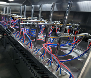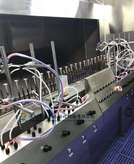 地軌式自動(dòng)噴涂線(xiàn)介紹地軌式自動(dòng)噴涂線(xiàn)也叫固定噴槍噴涂線(xiàn)或spindle自動(dòng)噴涂線(xiàn),原理就是把噴槍固定起來(lái),根據(jù)工藝要求進(jìn)行噴涂。其功能集地面自動(dòng)輸送線(xiàn),固定自動(dòng)噴涂,自動(dòng)烘干T等一體化系統(tǒng),并結(jié)合無(wú)塵凈化車(chē)間,恒溫控制,廢氣處理系統(tǒng)組成,可以根據(jù)需求設(shè)計(jì)兩涂?jī)煽荆咳荆耐克目荆偌由蟄V固化設(shè)備。地軌式自動(dòng)噴涂線(xiàn)特點(diǎn)與優(yōu)勢(shì):1.起到靜電除塵,噴涂、烘干、UV固化自動(dòng)噴涂流水的功能,適合批量連續(xù)生產(chǎn),產(chǎn)量高,噴涂均勻。2.輸送鏈條與軌道接觸點(diǎn)配置軸承,配合精準(zhǔn)的軌道,運(yùn)轉(zhuǎn)時(shí)輕快平穩(wěn)不抖動(dòng),3.靜電除塵系統(tǒng),進(jìn)口高要靜電發(fā)生器,離子風(fēng)嘴可上下前后機(jī)械式調(diào)節(jié),可配合產(chǎn)品大小不同而變化,加上工件自動(dòng),除塵無(wú)360度死角。4.固定式自動(dòng)噴槍可用于步進(jìn)是或者聯(lián)系的在線(xiàn)噴涂,及簡(jiǎn)單又實(shí)用。采用工件高速自動(dòng)噴涂,行程及速度可調(diào)節(jié),靈活性大,無(wú)死角。5.水簾環(huán)保噴房設(shè)計(jì),氣流順暢潔凈,噴房室內(nèi)導(dǎo)流板機(jī)擾流板的精心配置,讓亂流遠(yuǎn)離工件,并快速循環(huán)利用。6.UV固化室內(nèi)設(shè)都說(shuō)進(jìn)口等,任意調(diào)節(jié)照射距離與角度。可以任意選擇燈工作數(shù)量,根據(jù)照射強(qiáng)度選擇,工件自動(dòng)旋轉(zhuǎn)設(shè)計(jì),保證了工件照度均勻。好了,以上就是有關(guān)地軌式自動(dòng)噴涂線(xiàn)介紹,大家學(xué)會(huì)了嗎?